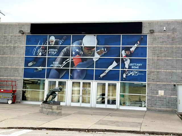 Large-scale outdoor graphics are used on exterior walls, brick, metal or smooth surfaces to create high-impact visuals. - Outdoor Window Graphics